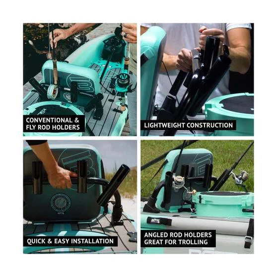 The BOTE Rocket Rac is a must-have addition to your BOTE LONO Aero. Just put it into the Rac Receivers behind the adjustable seat in your LONO, and you can fit up to 4 rods for an incredible fishing adventure. The upright holders are great for getting around, and the angled holders at the sides are a good option for trolling. A killer accessory for any keen angler.