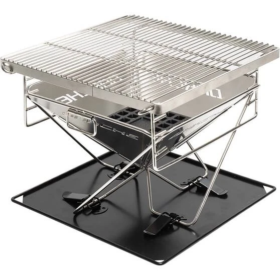 The cast iron trivet provides a flat base for the coals to sit on while also allowing extra air flow. The steel base plate acts as a heat shield and also catches any falling embers making cleaning up a breeze! The Darche BBQ 310 has a foldable design that packs away flat for easy storage and transport. It also comes with a convenient carry bag to keep it safe while not in use. From backyard to bush, the Darche BBQ 310 is just what you need for your next outdoor adventure.