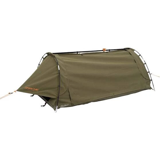Everything you need including pegs, poles and guy ropes come together in the convenient canvas carry bag. Next time you are heading off on a solo adventure or simply staying at a mates for the weekend give the Darche Dusk to Dawn 900mm Swag a go!