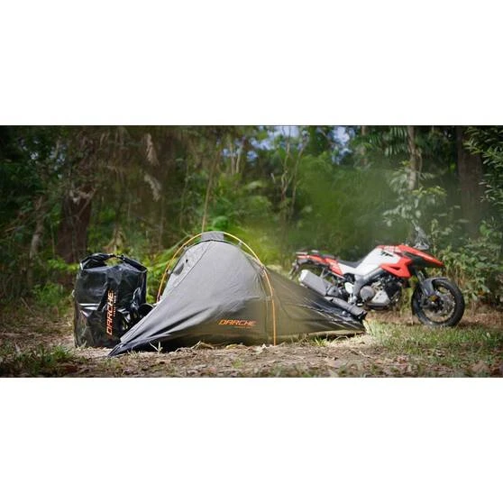 A convenient hutch at the head of the swag is just what you need to store all your gear and a zip down mesh opening makes it easy to access from inside the swag. The Ranger Solo + has a 50mm high density foam mattress with a removable cover making it easy to remove and wash as needed. Top it all off with a heavy duty PVC dry bag and D-rings so you can strap it to your backpack or the back of your bike with no worries. Next time you are heading off the beaten track don’t forget the Darche Ranger Solo + Swag.