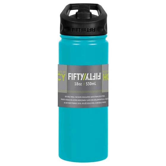 Stay hydrated on the go with a double-walled vacuum insulated water bottle from Fifty/Fifty. Fill it with hot or cold liquids and the bottle will retain its temperature all day. The bottle is made of lightweight 18/8 stainless steel that is BPA free, recyclable, non-leaching and will not retain taste or odour. The double-wall technology prevents condensation on the outside of the bottle, no more wet rings left on your work desk from your water bottle.