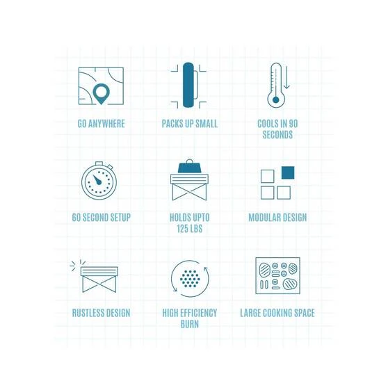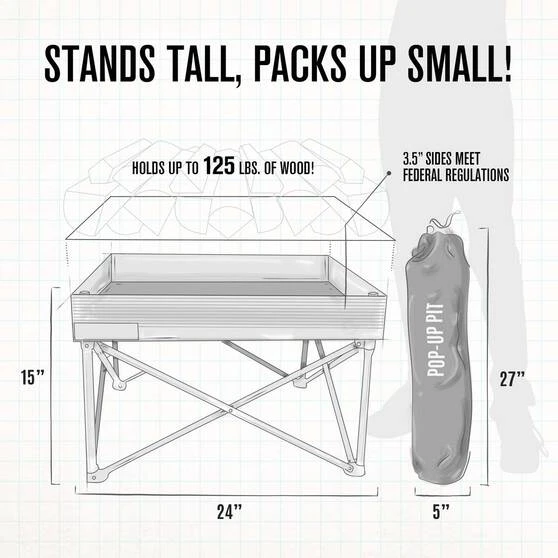 The Pop-Up Pit sets-up in just under 60 seconds without the use of any tools and cools down in 90 seconds once your fire is extinguished, making it an easy and quick pack up.