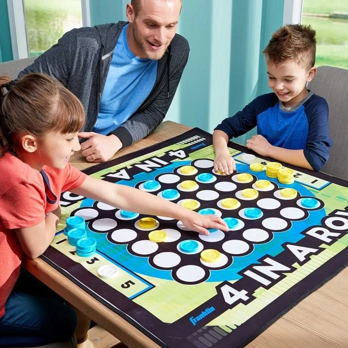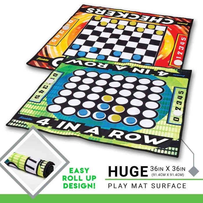 The Franklin Sports 2 in 1 checkers and 4 in a row soft game mat is perfect for the kids in their game room. We built this set to be made from a durable and soft neoprene mat and comes with 42 large game chips that are easy to handle. Easily switch from each game by flipping over the mat! kids can keep track of how many rounds they won with the built-in scoring section on the edge of the game mat. These games will help your kids develop their cognitive stagey skillset as they have fun playing! Bring home the Franklin Sports 2 in 1 checkers and 4 in a row game mat for your kids today!