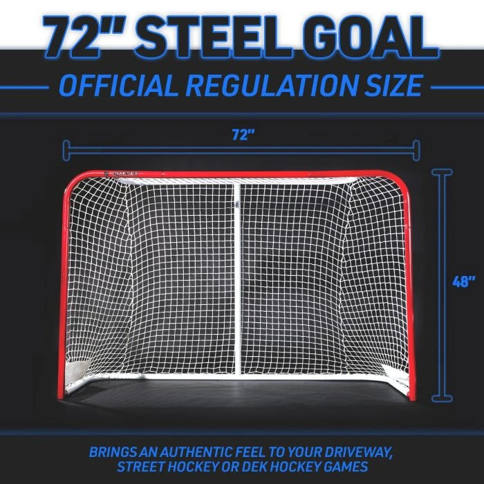 - 72″(w) x 48″(h) x 30″(d) steel hockey goal
