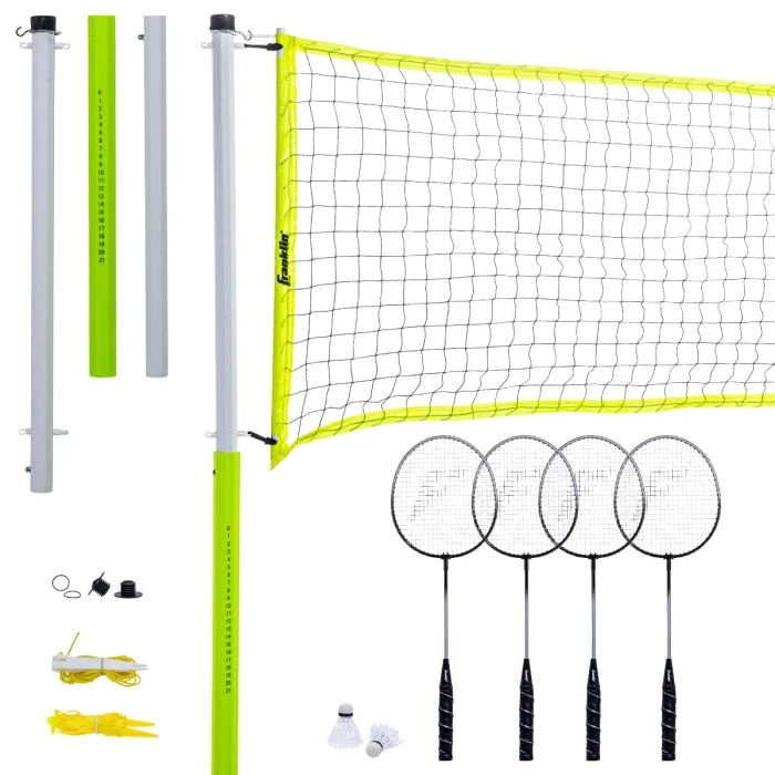 - ACCESSORIES are all included: (4) aluminum badminton rackets, (2) nylon birdies, (6) stakes and ropes