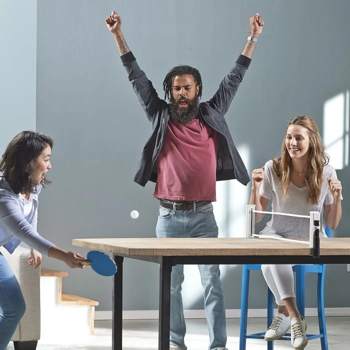 The Anywhere Table Tennis net with paddles and ball by Franklin Sports has been designed to convert almost any table into a table tennis table! The setup takes less time than calling your grandparents on your birthday. Setup is a breeze thanks to our soft clamp design that is easy to use and gental on tables. Simply pull the two halves appart and extend the clamps to install. Your family and friends will playing tons of fun playing table tennis in your home.