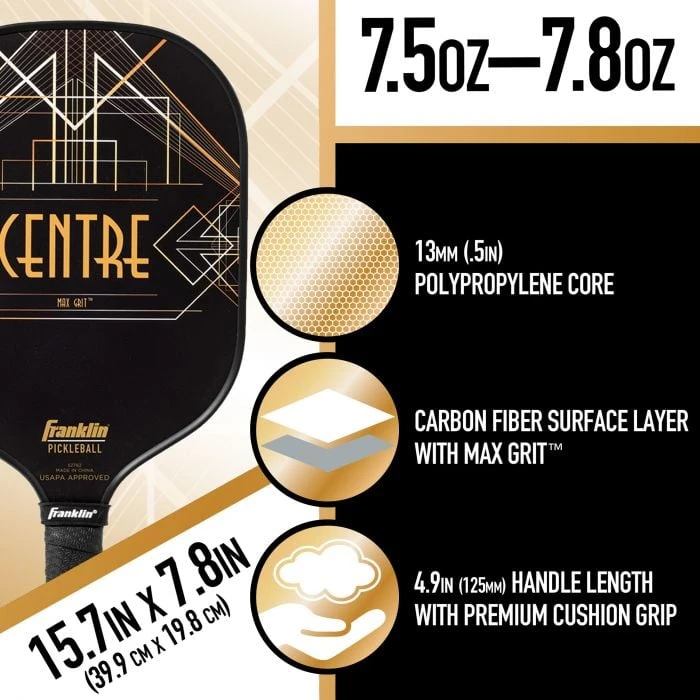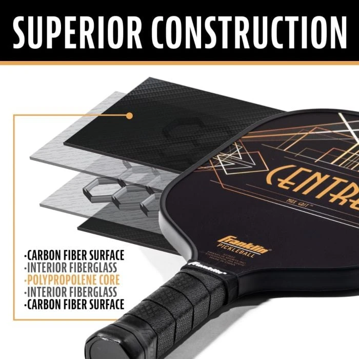 - STRONG, DURABLE CORE: The 13mm polypropylene paddle core is built for durability and effortless shot making while the carbon fiber surface layer ensures a larger sweet spot in the center of the paddle for flawless contact and increased control