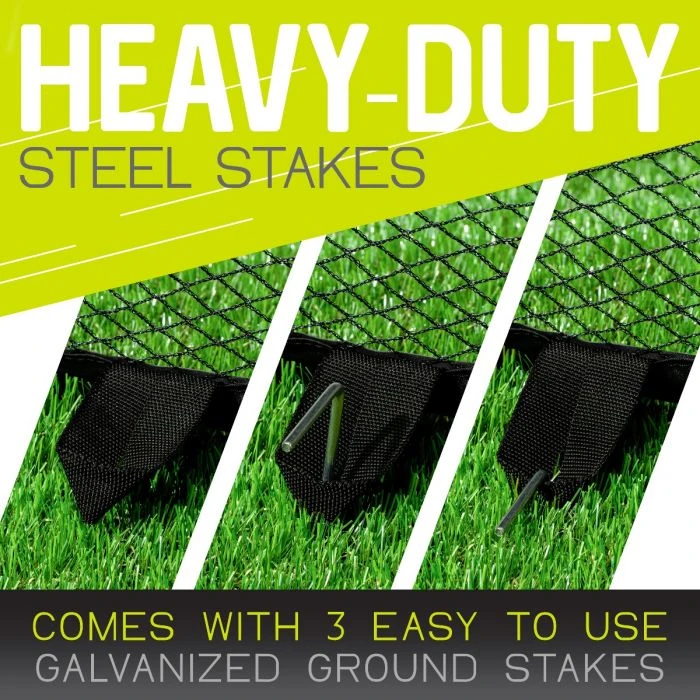 - GROUND STAKES INCLUDED: Anchor the net to the ground with the (2) included ground stakes to ensure that the goal won’t move or tip while playing