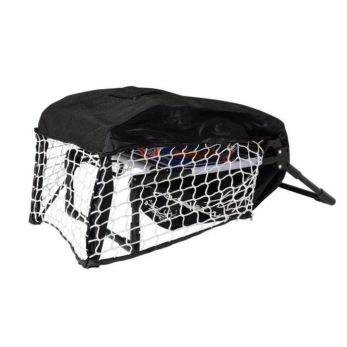 The Franklin Sports Electronic Bounce-A-Bucket has durable frame construction and easily folds for travel or storage. Simply bounce the mini basketball off the trampoline target and the LED electronic digital scoring and in-game play by play sounds give it an arcade feel. Includes (2) mini basketballs and is 21″x 11″ x 19″.