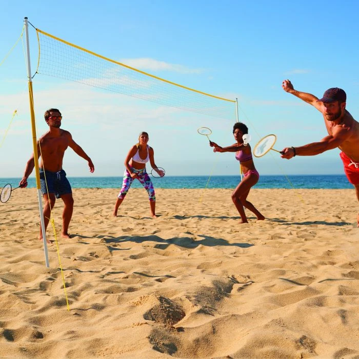 The Franklin Sports Badminton set is a classic outdoor game that will bring hours of fun for all ages. The set includes all you need for a day of fun: (1) Badminton pole set and net, (4) steel badminton rackets, (2) nylon birdies and (6) ground stakes/ropes. The Badminton set is easily transportable to your next picnic, BBQ or party and is sure to be a hit. Badminton is a timeless classic yard game that can be enjoyed by all ages…bring this set to your next gathering today!