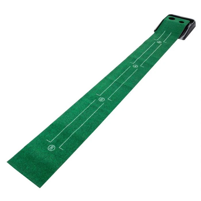 Practice makes perfect! No batteries required! The Franklin Indoor Golf Putting Green with gravity feed ball return can be used indoors or out. This training tool is great for all levels of play. No more chasing your balls or bending to pick up. The authentic style of turf provides a great surface for practicing your putts. Save time and money. This training aid will also allow you to get more putts in with less effort, ultimately improving your short game.