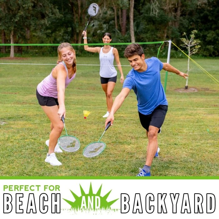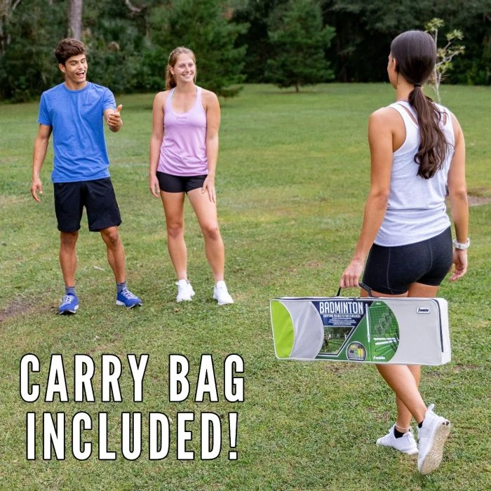 Enjoy time outside with this complete badminton set from Franklin. This portable set is great for the beach, parties and backyard fun. Ideal for two to four players, this badminton set is easy to set up and is appropriate for all skill levels.
