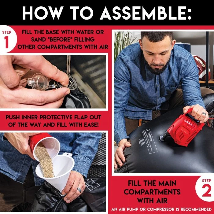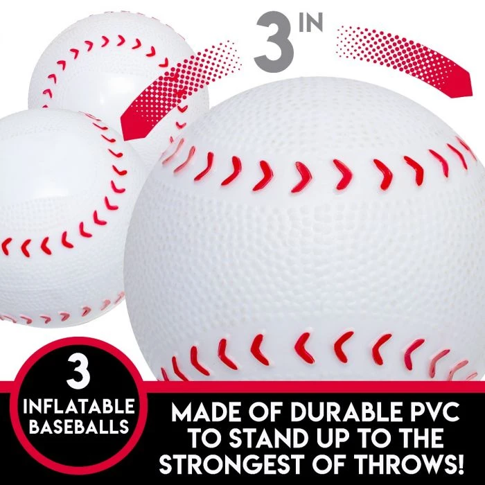 - SET INCLUDES: (1) 45†inflatable 5-hole baseball target with water-fillable base, (2) 3†rotationally molded PVC baseballs, (1) sports ball hand air pump with needle