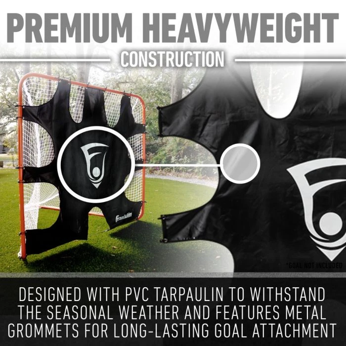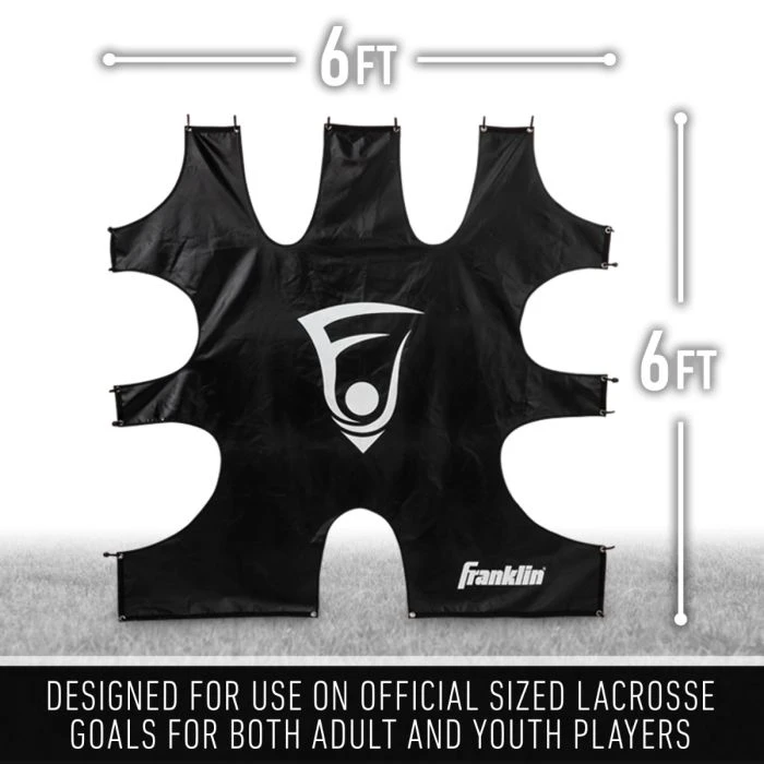 Practice… Train… Score! Perfect your shot with the Franklin Sports Lacrosse Goal Shooting Target. Each target is constructed of heavyweight tarpaulin with a reinforced weave, meaning it will survive an endless barrage of shots! The target will fit any official size lacrosse goal, and quickly attaches with 20 heavy gauge bungees. The reinforced steel grommets help ensure your target will last! The 9 scoring zones help you master your shot placement and get ready for any situation! Whatever your level, this target is a must have for any player looking to improve their game!