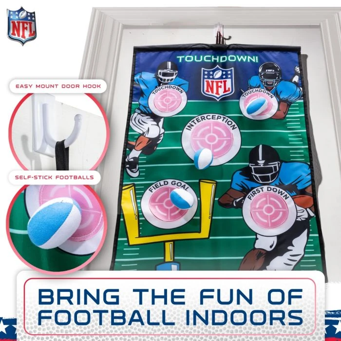- INDOOR FOOTBALL FUN: Bring the fun of football indoors with this super fun over the door football target toss game that kids are sure to love!