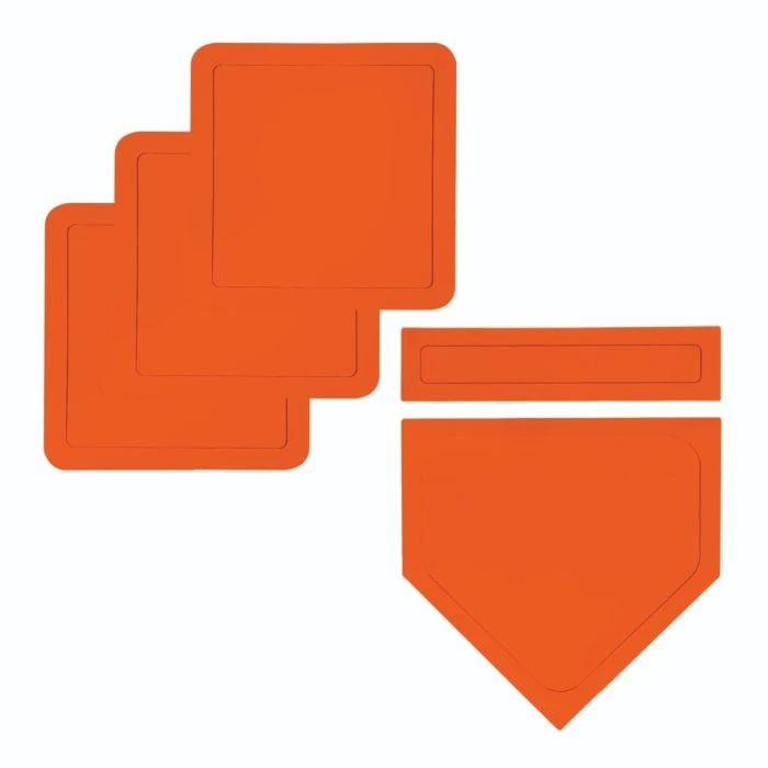 - 5 piece rubber base set. Includes 3 bases, home plate, and pitcher’s rubber