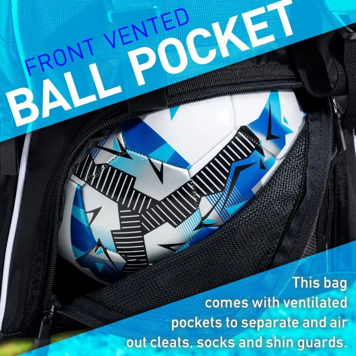 - MAXIMUM STORAGE: This soccer bag has room for all the equipment you need for practice and games. Cleats, socks, water bottles, shin guards, and ball can fit with ease!