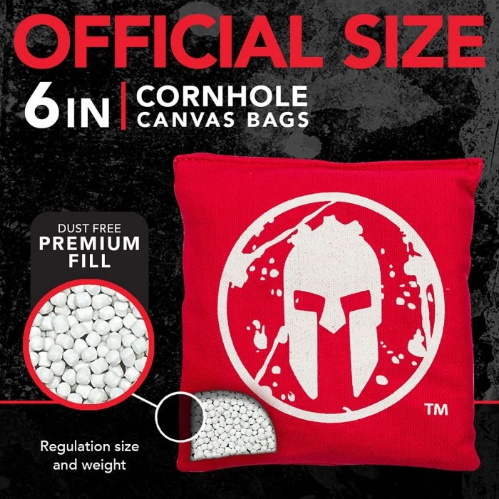 - OFFICIAL SIZE bean bags are included! 8 Spartan logo bean bags are regulation size (6″ x 6″) and made of sturdy canvas material