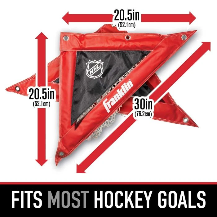 Improve your shot accuracy with the Franklin Sports street hockey corner shooting targets! It includes two targets that are uniquely designed so you can practice picking top corners. The target frames are constructed of high impact steel covered in tarpaulin, and all-weather mesh pockets. They securely attach to any street hockey goal with the eight included bungees and set up in minutes! Take your game to the next level with these targets! Target Dimensions: 20″ (H) x 20″ (W)