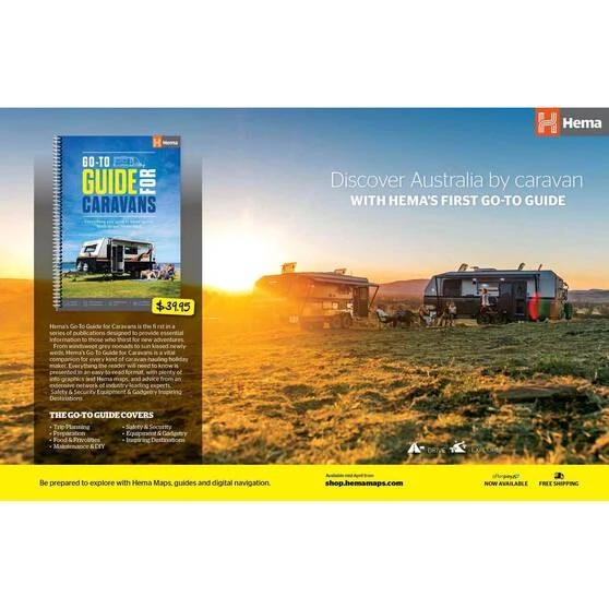 If you’re planning to hit the road, make sure you grab the Hema Go-To Guide for Caravans. It’s got everything you need to know for your caravan holiday adventure, with easy to read guides, infographics and Hema maps. You can read advice from industry experts. Great for everyone from newly-weds to grey nomads.