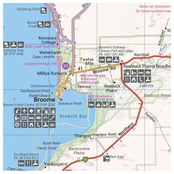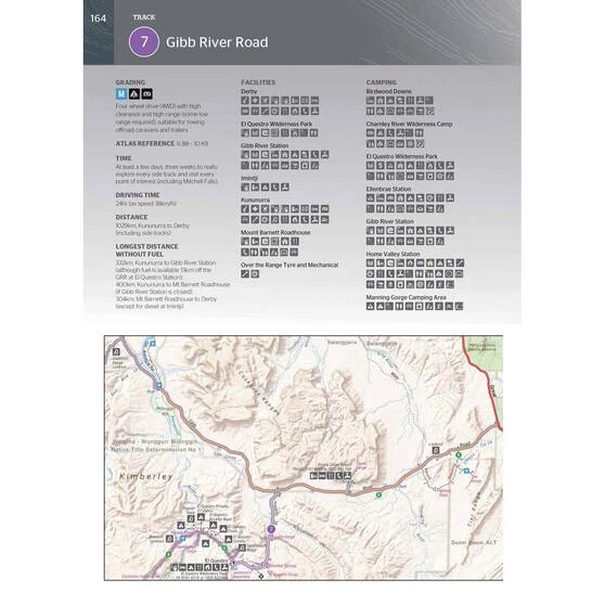 Gear up for the adventure of a lifetime with the Kimberley Atlas & Guide. This comprehensive book gives you definitive info for exploring the Kimberley region. It includes 20 atlas pages in a stunning cartographic style, and detailed information on how to plan your next trip. The maps show you important info on fuel locations, and the guide includes distances, gradings, drive coverage, and everything you need to know before you set off.