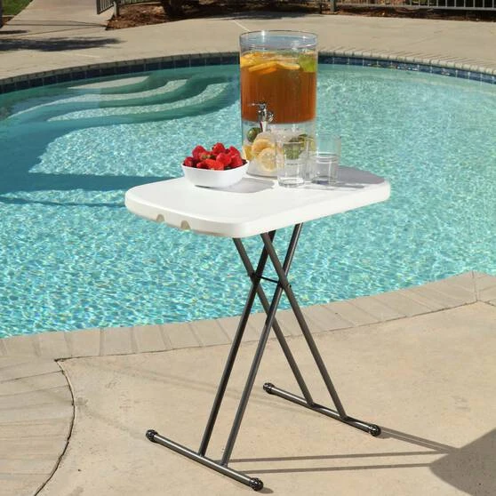The Lifetime Blow Mould Table folds in half to a compact size that is easy for transporting and storing. A perfect side table for your next camping adventure.