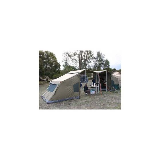 The Awning Connector is fully waterproof and has a gutter system that funnels the water away and stops it from getting in the tent. It packs away neatly into its carry bag at the end of your trip. The Oztent Awning Connector comes with a 2 year warranty and is made to the same high standards as all Oztent products.