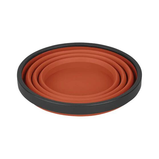 The X-Mug is a collapsible mug that is also calibrated as a measuring cup. The flexible silicone sides fold flat making this a small compact disc sized dinnerware piece that nests neatly with other X-Series dinnerware and X-Pots. The rigid ring within the rim keeps it sturdy and easy to drink out of.