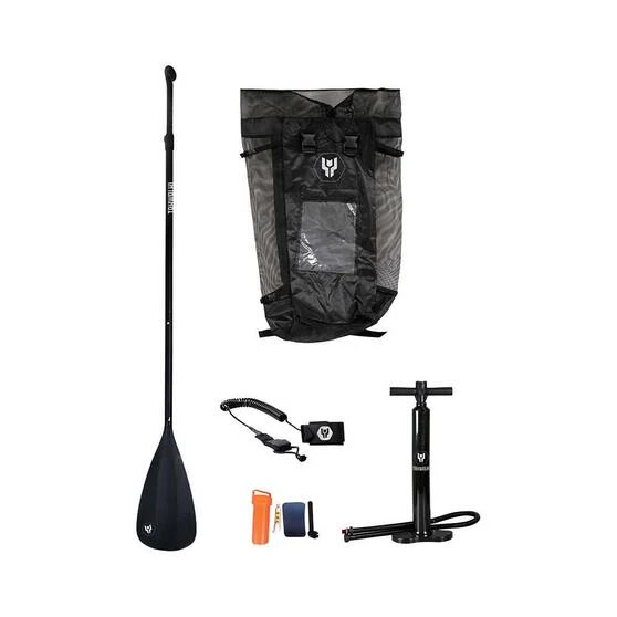 - Pack includes: Double action pump, leash, adjustable paddle, repair kit and carry bag
