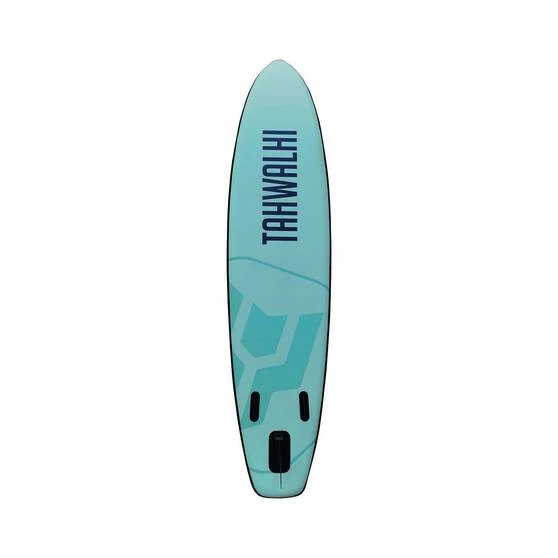 Have a fun day paddling on the water with the Tahwalhi Inflatable Stand-up Paddle Board Byron Sands 11′. This inflatable SUP cuts through water and keeps you stable as you navigate waterways. Made with a durable rigid drop stitch fabric over a PVC deck you will have stable footing with the EVA deck grip. Transport it easily with the handy carry bag and head out with everything you need to get going with a pump, leash, paddle and repair kit.