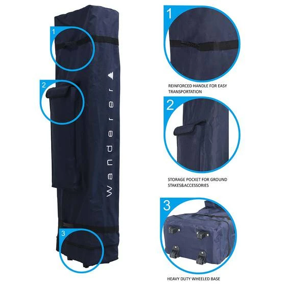 PLEASE NOTE: The gazebo is designed to provide shade only. Do not use this gazebo in strong wind and rain. Wind and rain can damage the gazebo and could result in injury to you and others. Always stake or weight down your gazebo at any time once set up. This gazebo is NOT a permanent structure