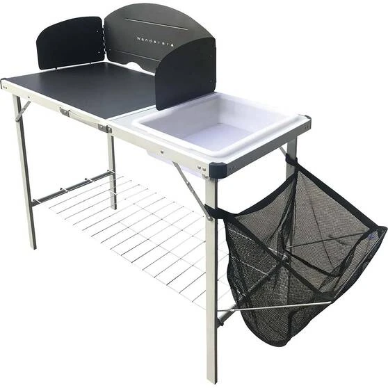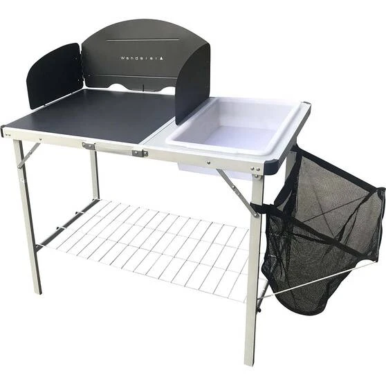 This sturdy Cook and Clean Camping Kitchen from Wanderer makes it a breeze to prepare a delicious meal while camping. Just take it along in the easy included carry bag, and pop it out when the sun’s going down for a perfect campsite meal. The lightweight folding frame is easy to pack up and set down, and pops out into a large space for chopping, cutting or preparing food. The removable tub on the right makes it easy to clean up the dishes when you’re finished, and they can be stored on the wire rack below for drying. A great pairing with any camping stove.