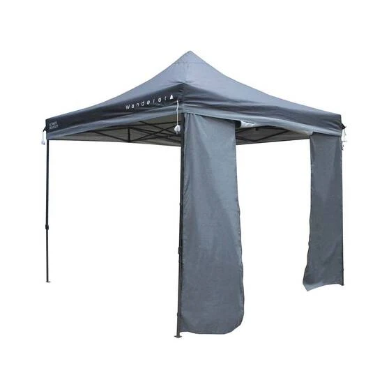 Wanderer Deluxe 3x3m Gazebo Wall with Door perfectly accompanies a 3x3m gazebo. The Kit provides total coverage of three metres or one side of your 3x3m gazebo with the inclusion of a doorway. The 420D polyester silver coated wall with a roll-up door protects you from the sun, wind and rain. The single-wall design means you can still soak up the beautiful surroundings as you enjoy a good book or a family meal. The wall is designed to suit the top height setting of the gazebo.