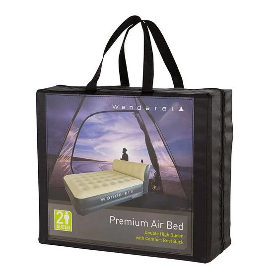 Experience ultimate comfort with the Comfort Rest Double High Queen Airbed, brought to you by Wanderer! This luxury air bed has been crafted from heavy duty PVC for superior durability, and covered with a high comfort, soft touch, flocked top for a dreamy comfort feel.