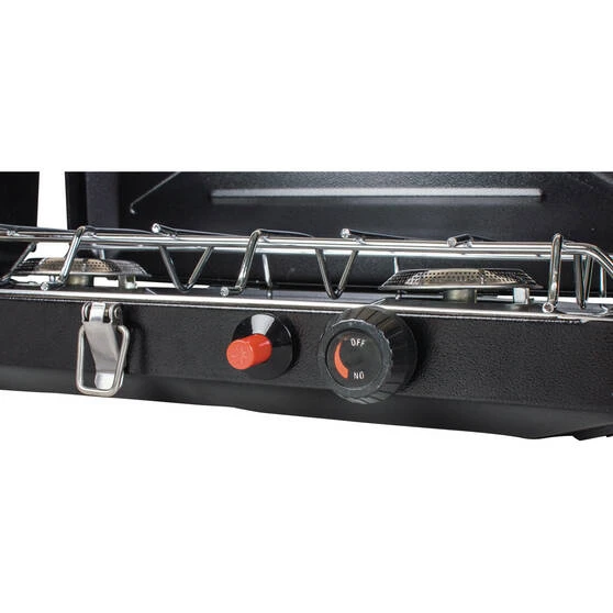 A 600mm gas hose is included with each stove for connection directly to a 3/8″ left handed thread gas cylinder. Make cooking a breeze on your next camping trip with the Wanderer LPG 2 Burner Portable Stove with Drip Tray.