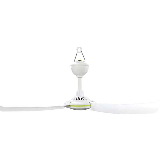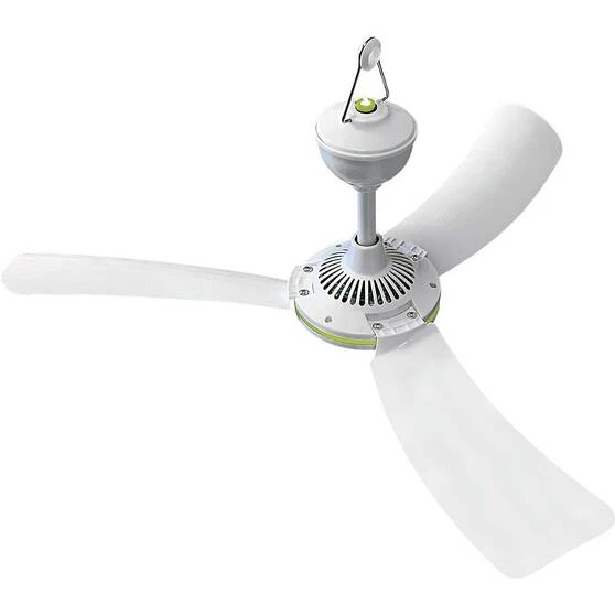Keep cool in the great outdoors this summer with the Wanderer Portable 12V Ceiling Fan. This 12V fan has an inbuilt hanging loop and is lightweight so that you can easily attach it to your gazebo, awning, caravan or anywhere else you need a cool breeze. It has a 4m lead that can be plugged into any 12V power source. The blades can easily be removed to pack it away for storage when not in use. The Wanderer Portable 12V Ceiling Fan is the perfect accessory for your outdoor adventures this summer!