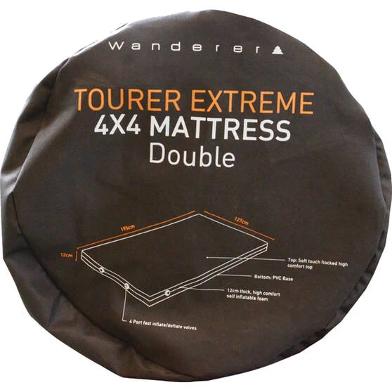 For your next touring, camping or travelling experience, look no further than the Extreme 4×4 Queen Mattress from Wanderer. This inflatable mattress has been developed with a PVC base for durability and a soft flocked top to keep you cosy. It inflates and deflates automatically via four ports – handy for when you need a quick set up on the go.