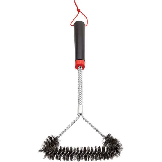 The Weber 3-Sided Grill Brush is the ultimate Weber accessory. A clean BBQ grill prevents yesterday’s steak dinner from tainting today’s carefully seasoned and delicately flavoured fish and veggies. Use the 3 Sided Grill Brush to clean your cooking grills before each use so that each meal is as delicious as the next. This BBQ brush features a round head full of metal bristles and is 45cm in length, making it easy to reach and clean all areas of the grill. Keep your Weber sparkling with the Weber 3-Sided Grill Brush.